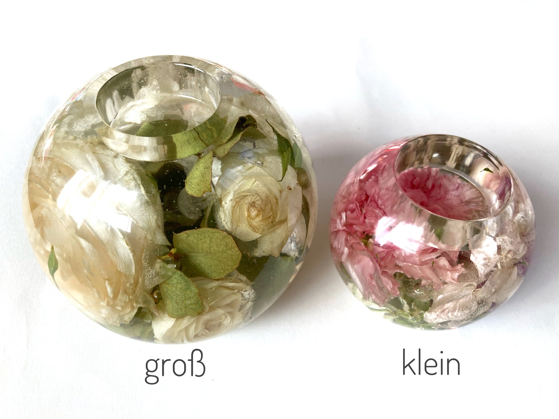 Jedes Andenken wird individuell gefertigt. Die Bilder auf dieser Webseite sind Beispiele von bereits gefertigten Andenken. Teelichter sind nicht inkludiert.